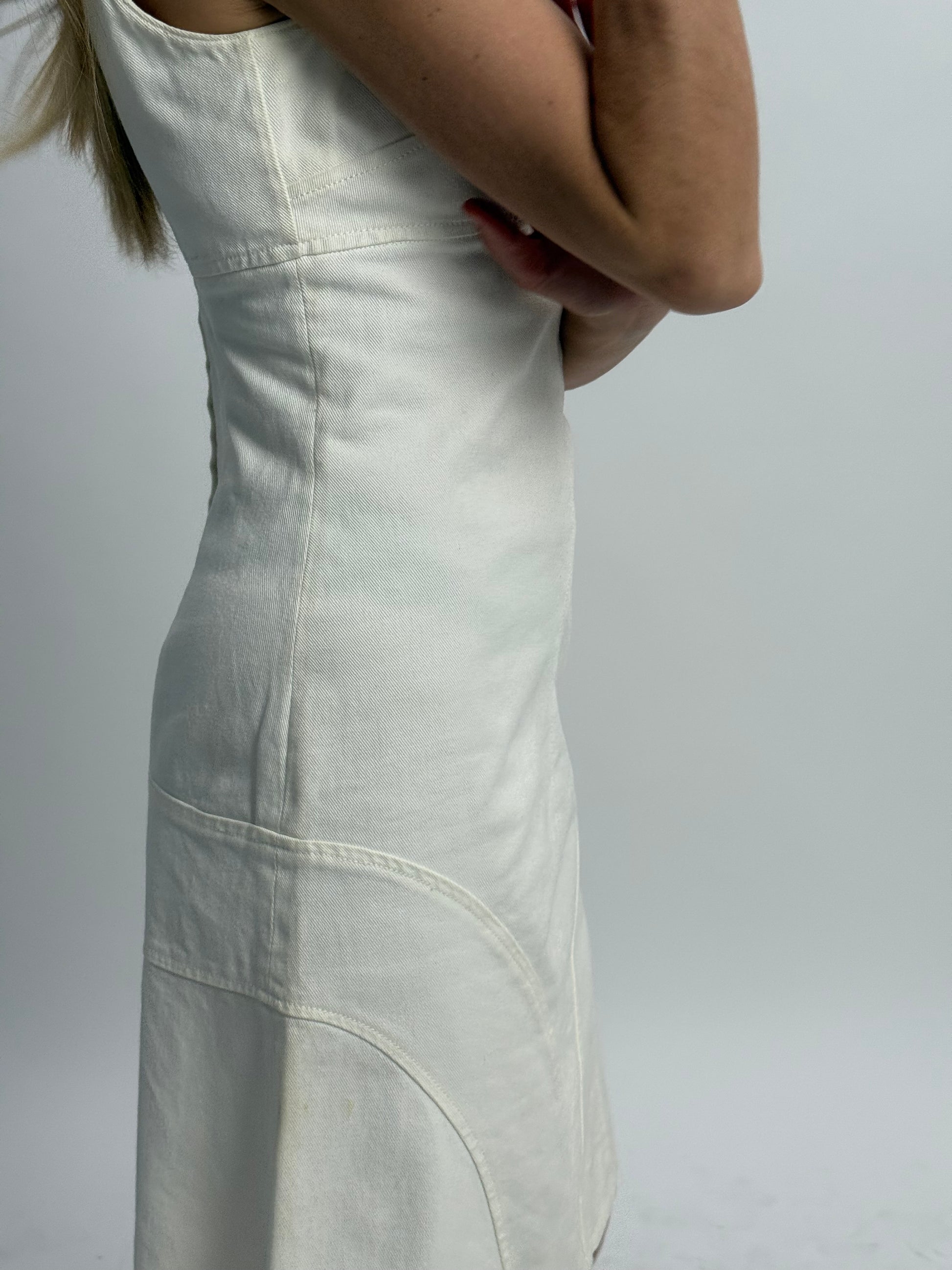 Elevate your casual wardrobe with this stylish Chanel Denim Tennis Dress, designed in a classic white hue. Crafted from a comfortable blend of 98% cotton and 2% elastane, this dress combines a sporty aesthetic with Chanel's iconic sophistication.