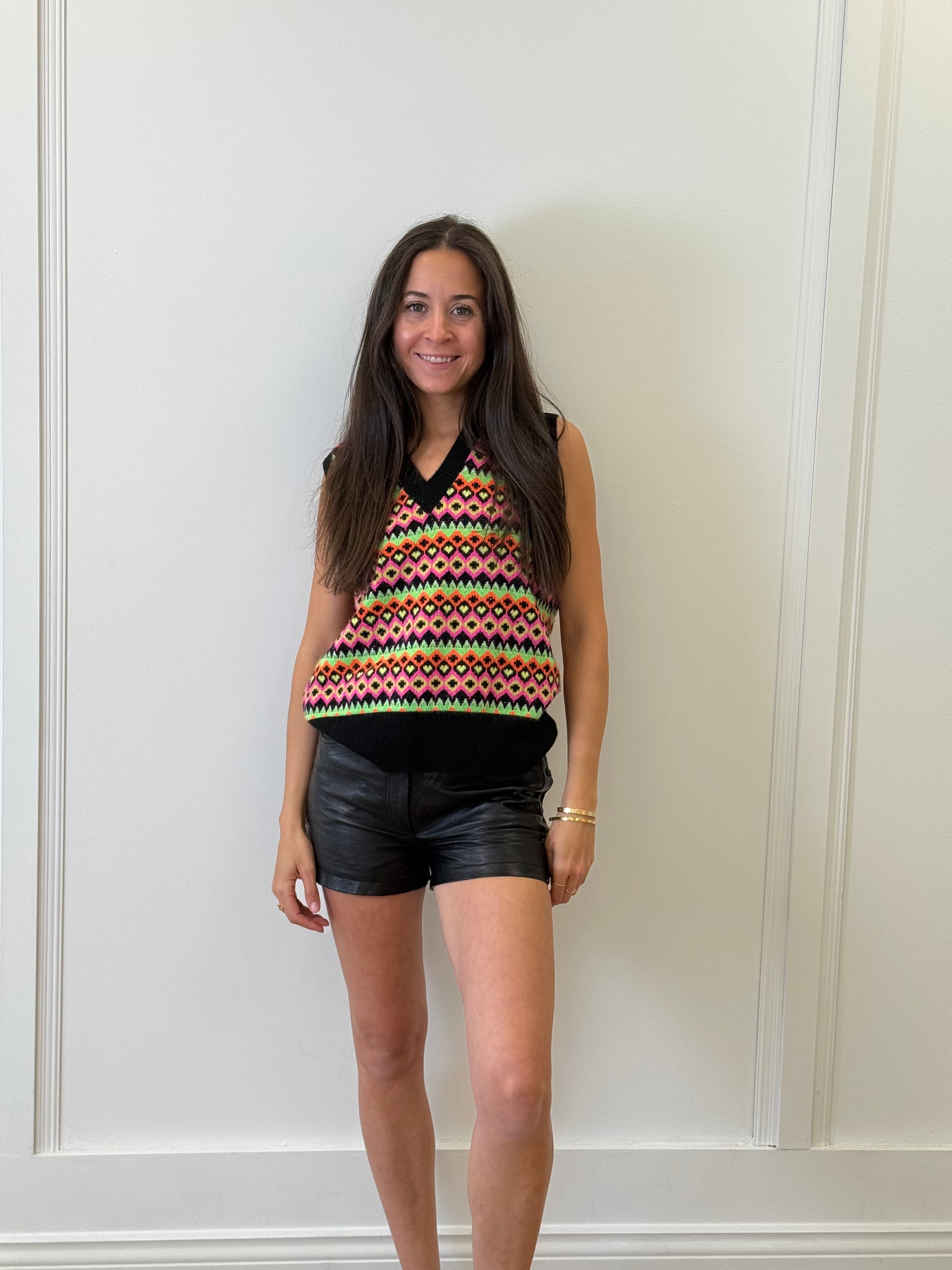 Maje Leather Shorts w Plaited Lace on Side - Black (Estimated Size 8)