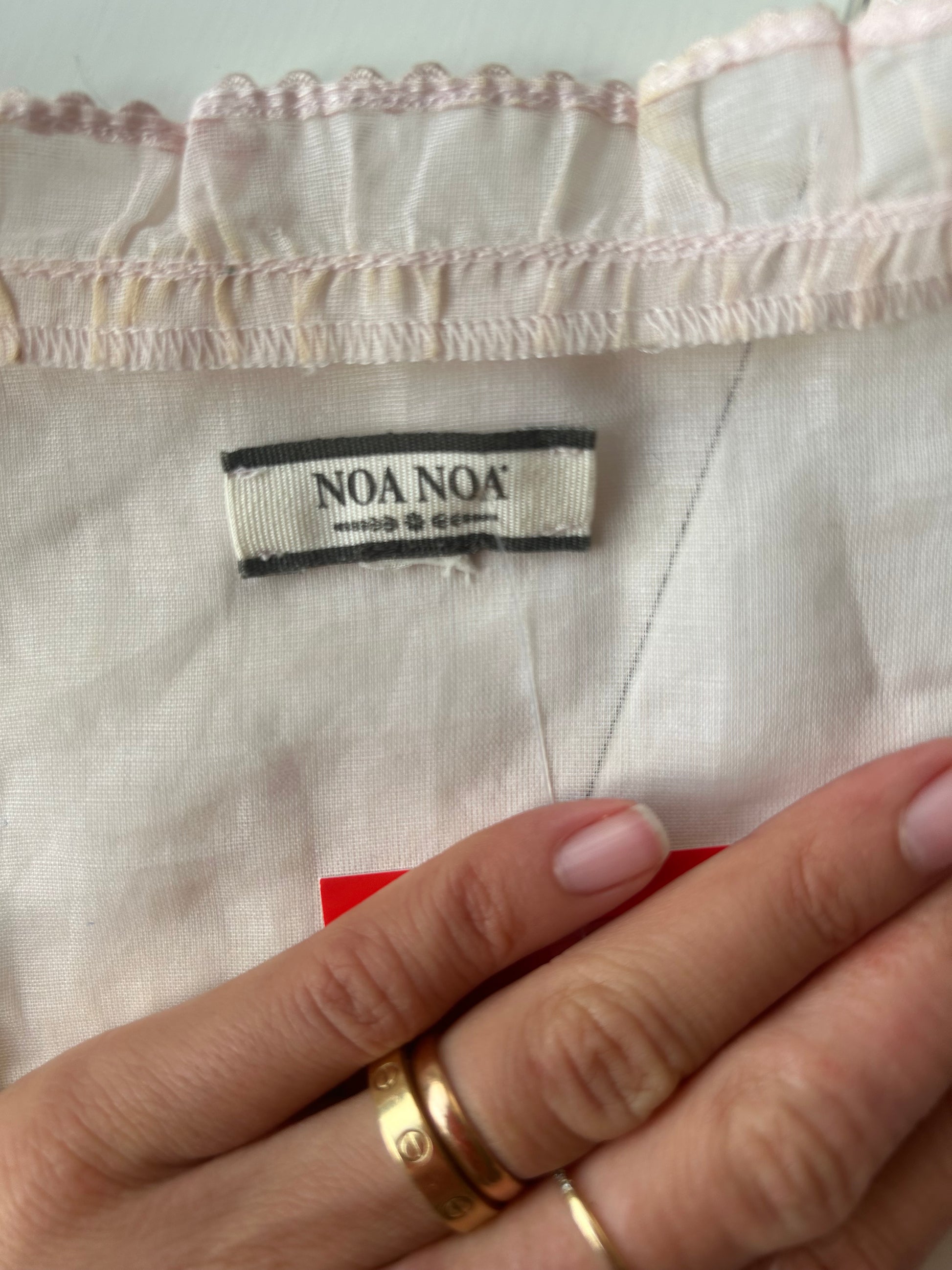 Add a touch of softness and charm to your wardrobe with the Noa Noa Pink Ruffle Sleeve Sheer Vest. This lovely pastel pink vest features delicate ruffled sleeves, offering a whimsical and feminine silhouette that's perfect for layering or wearing alone.