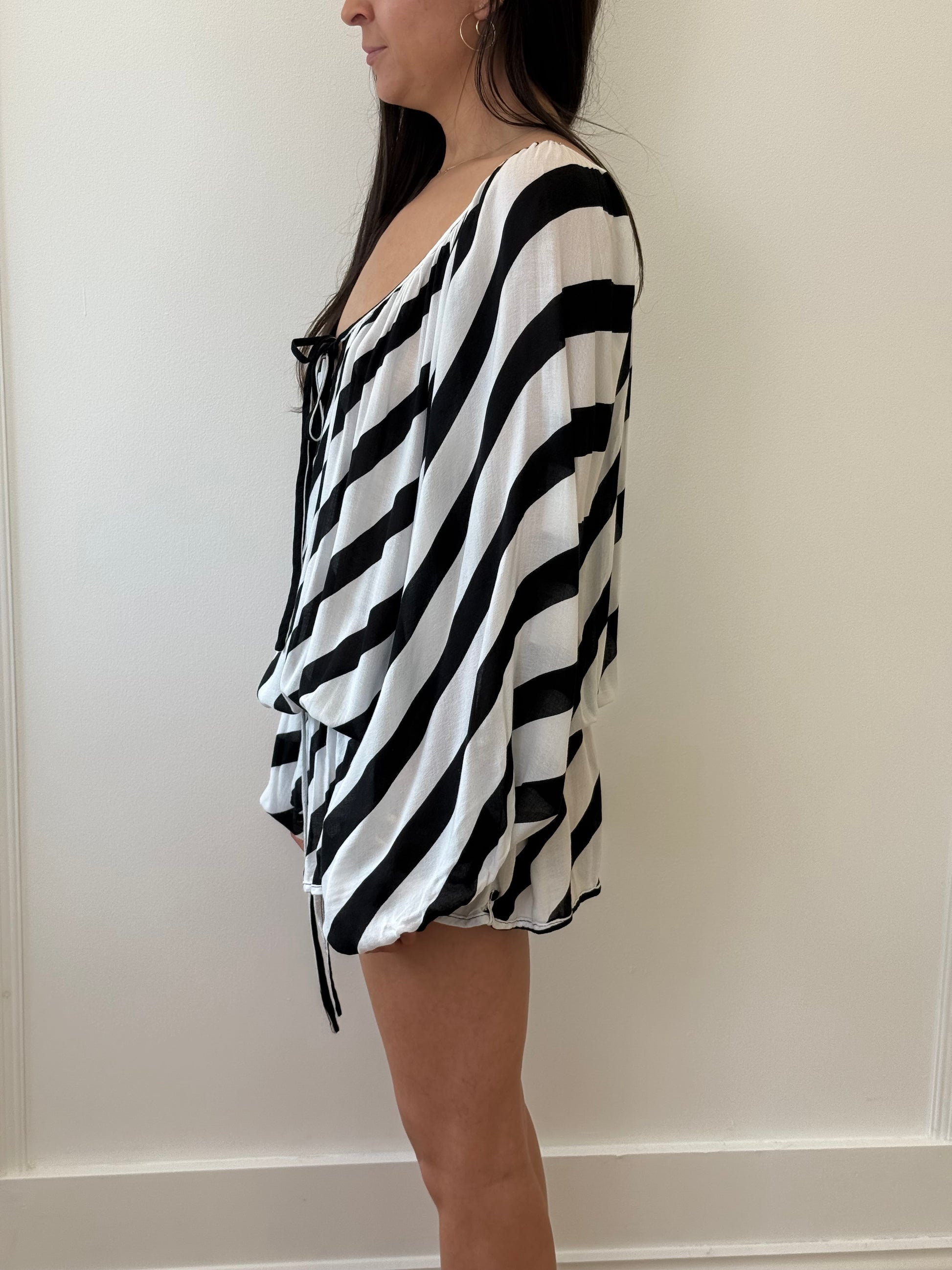 Worn, with a few brown stains on the right sleeve and two holes on the left sleeve