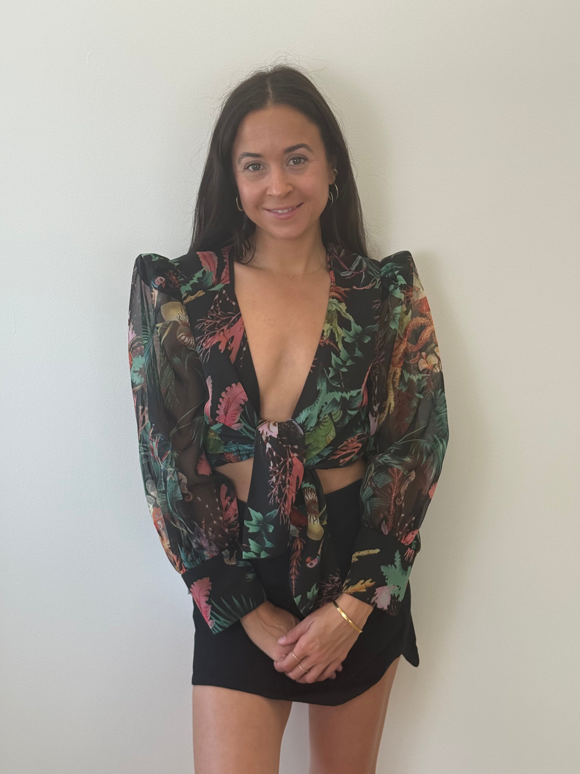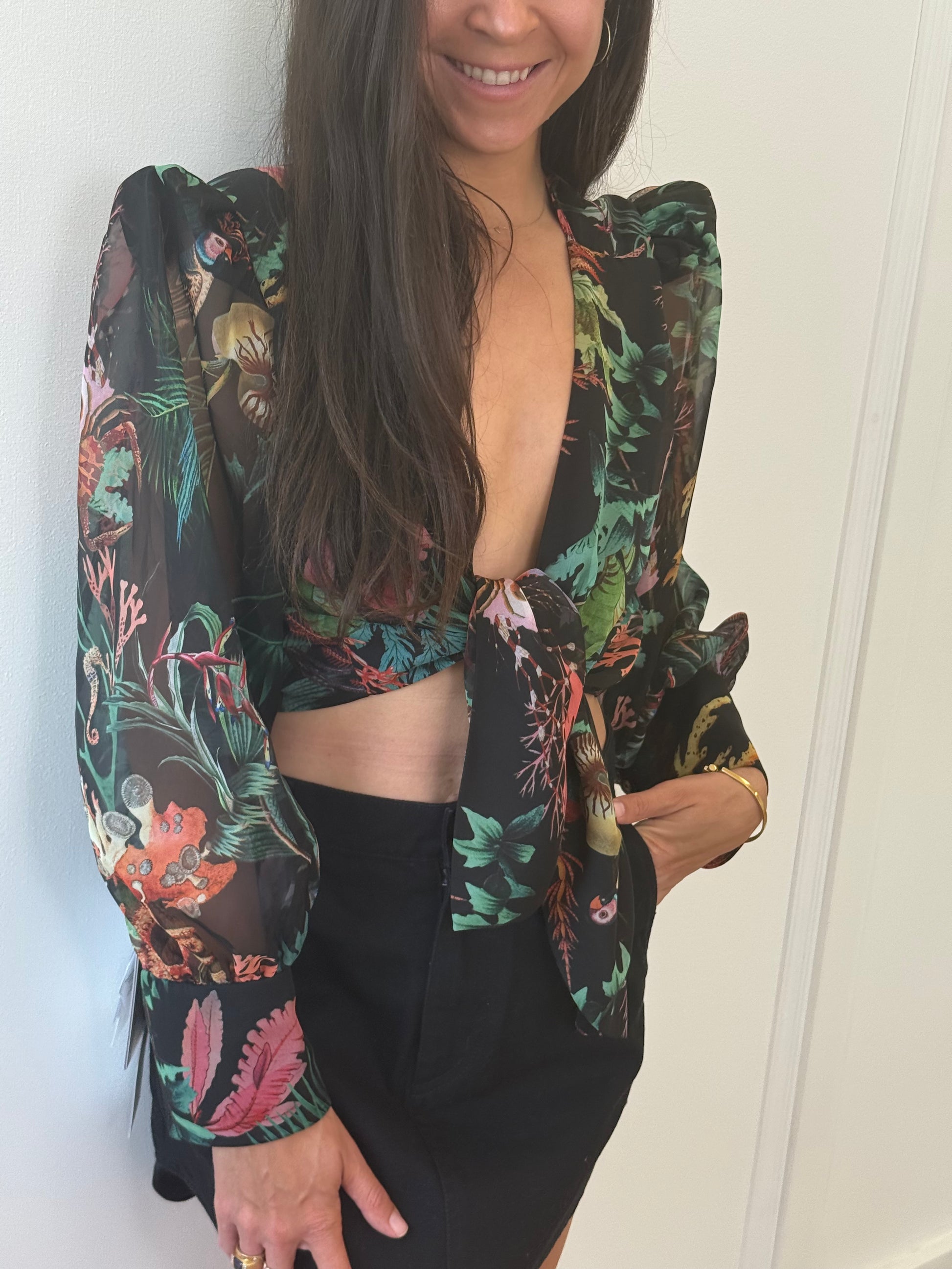 PatBo Oasis Tie-Front Cropped Top (XL)