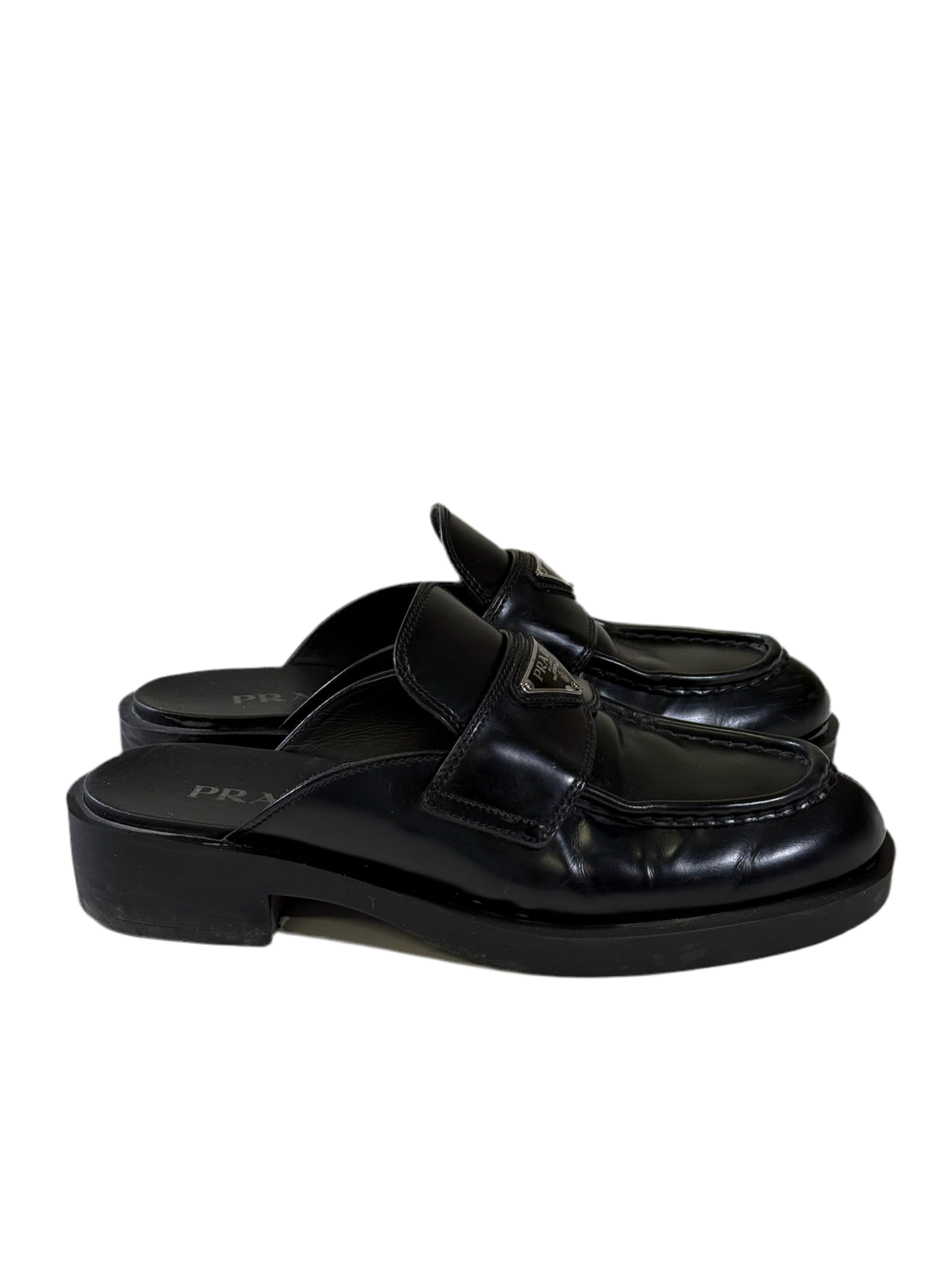 Prada Black Leather TRI MULE Sling Back - Black (38 EUR)