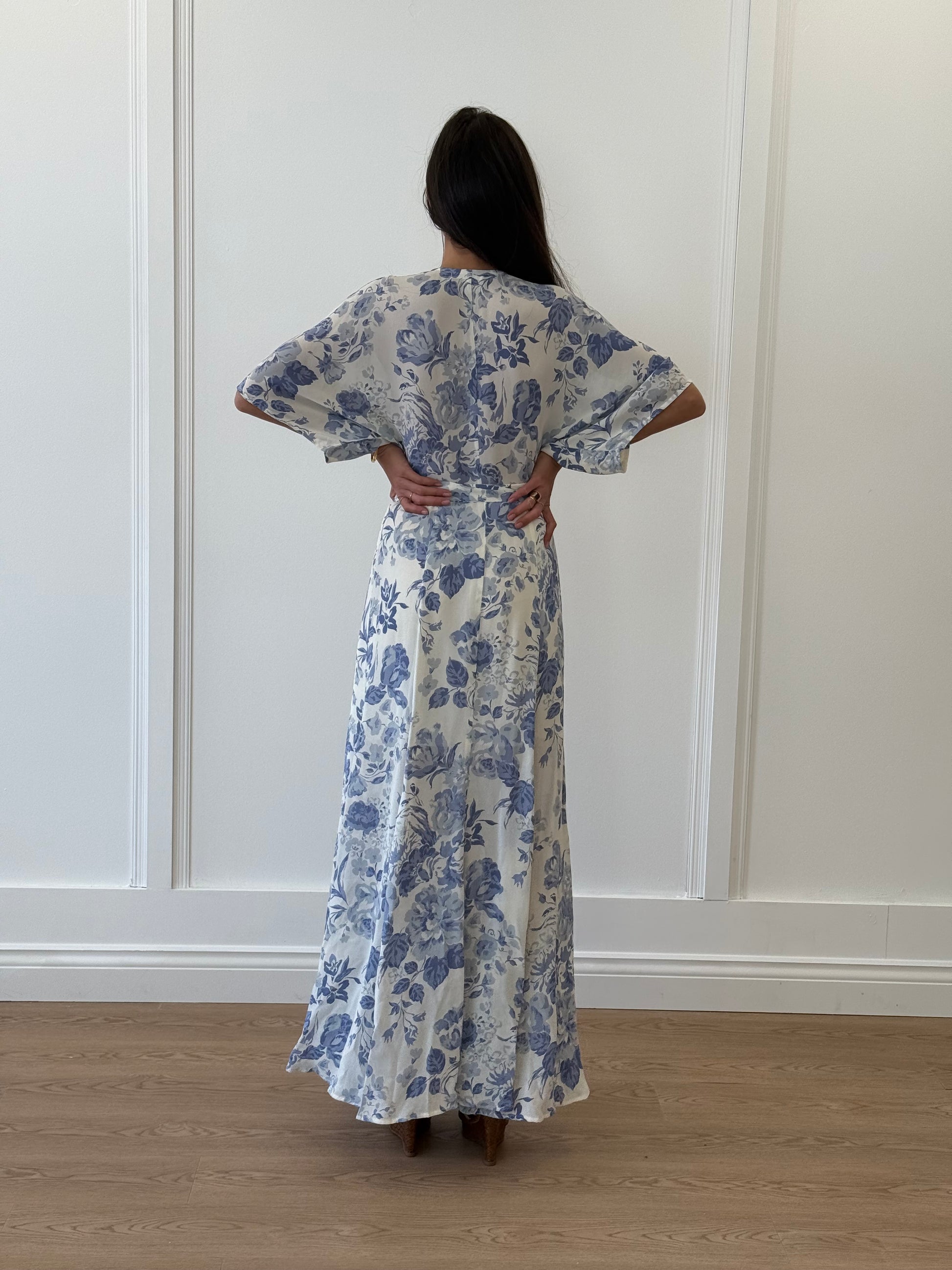 Reformation Blue Floral Wrap Around Dress - Blue (Estimated Size 10)