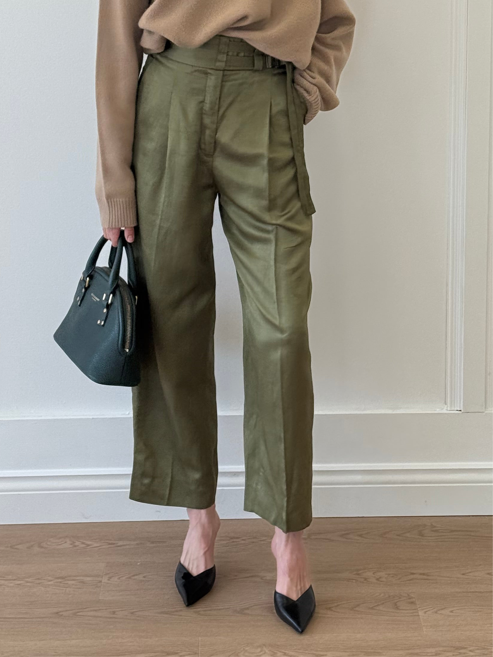 Sandro Green Barrel Leg Pants with Adjustable Belt - Khaki (Size 38)