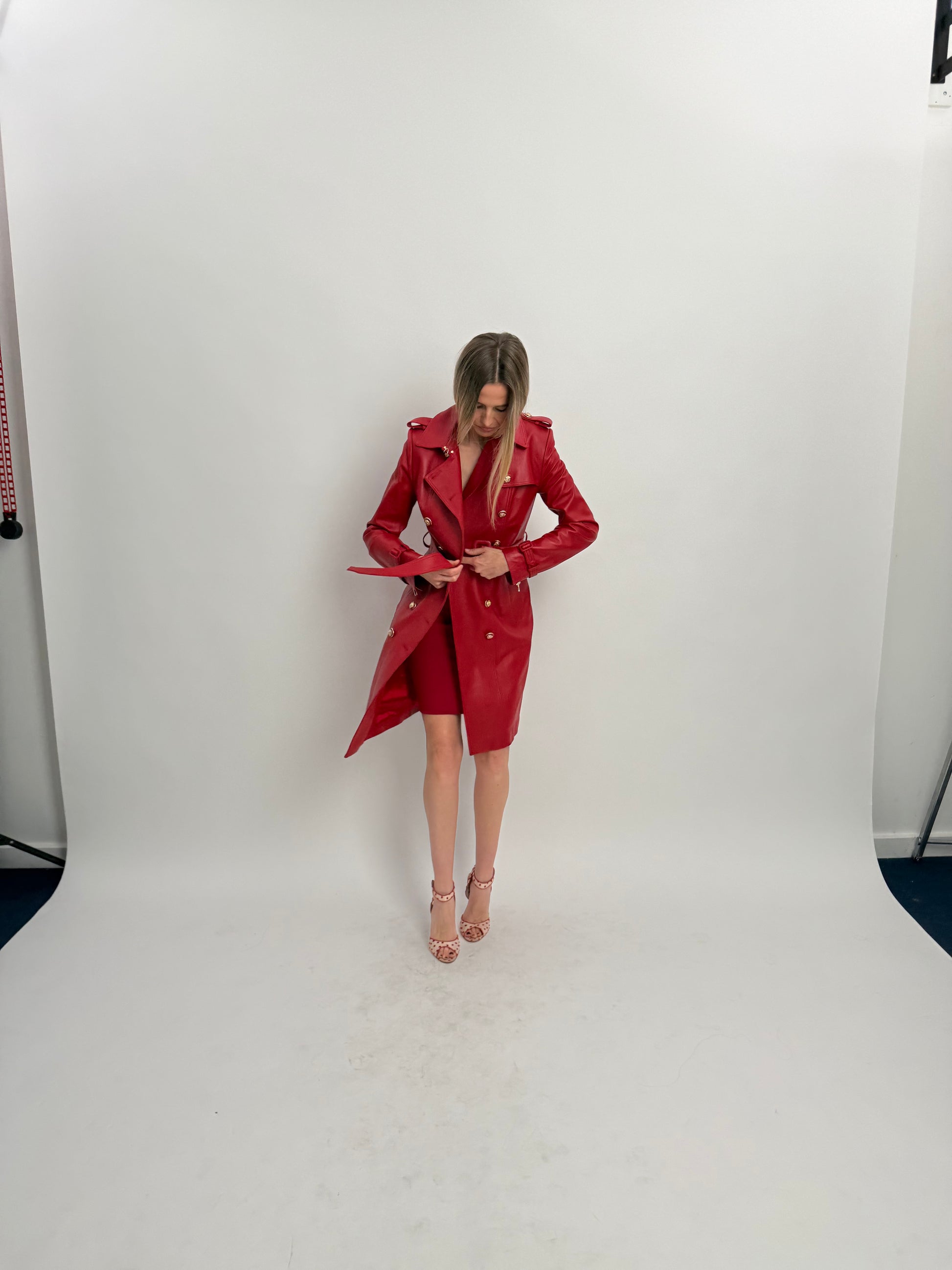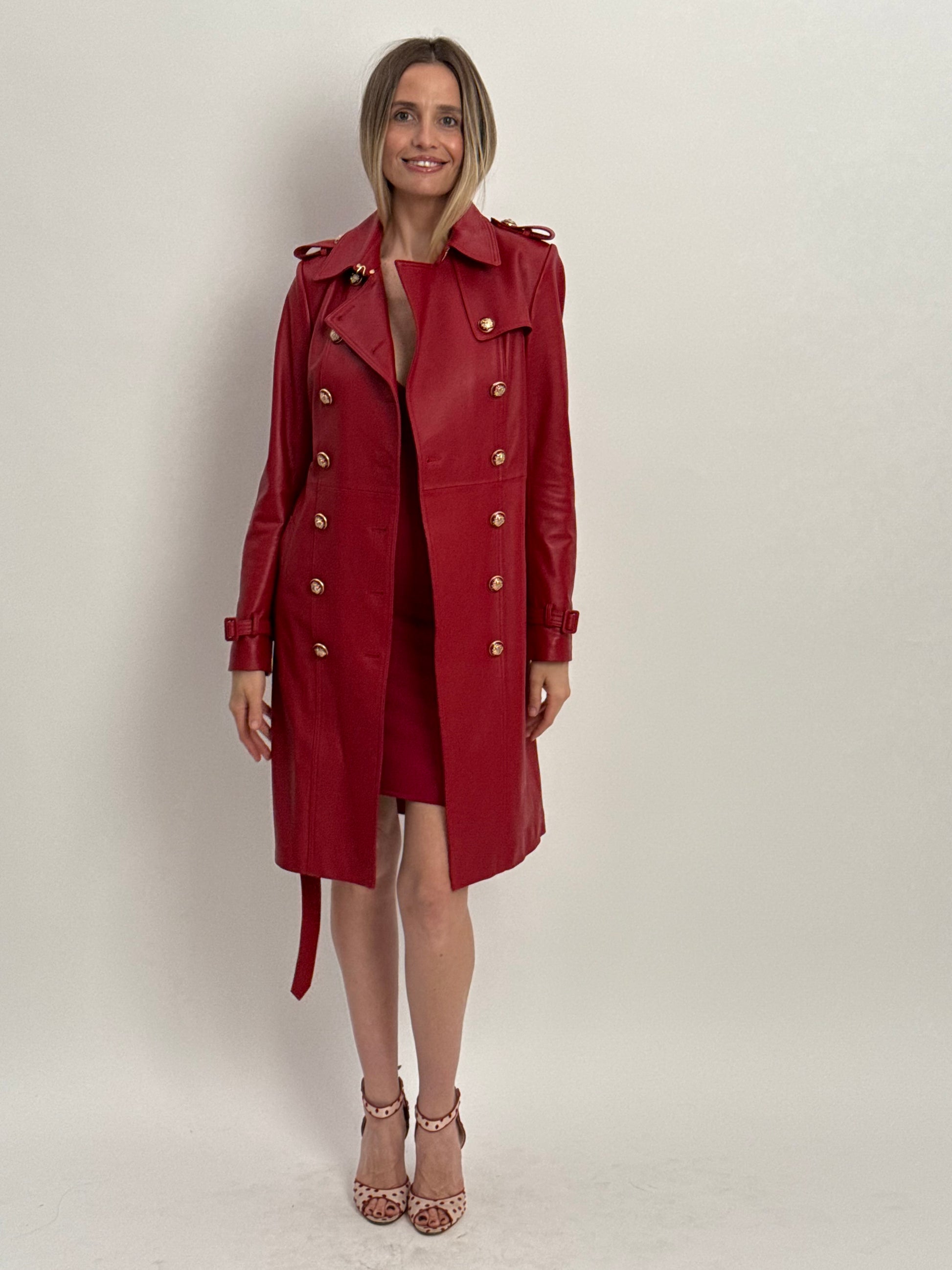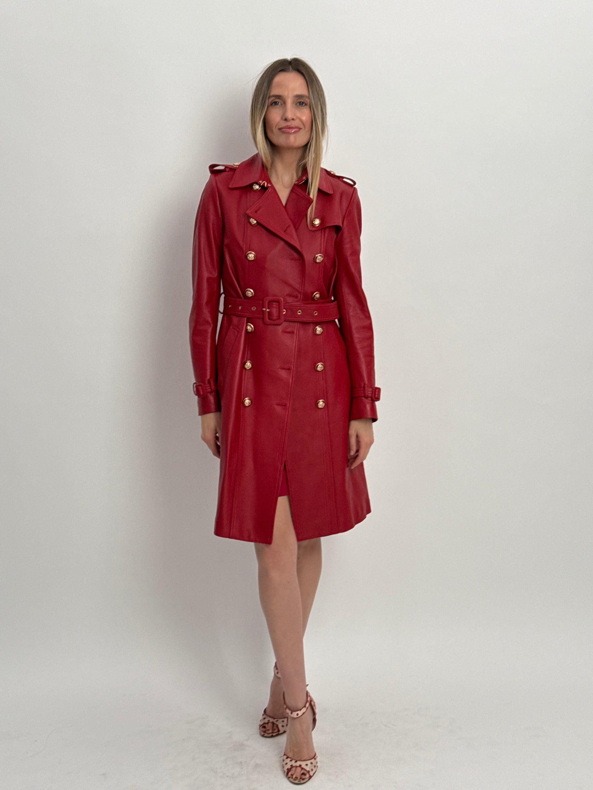 Santinni Couture Leather Trench Jacket - Red (Medium)