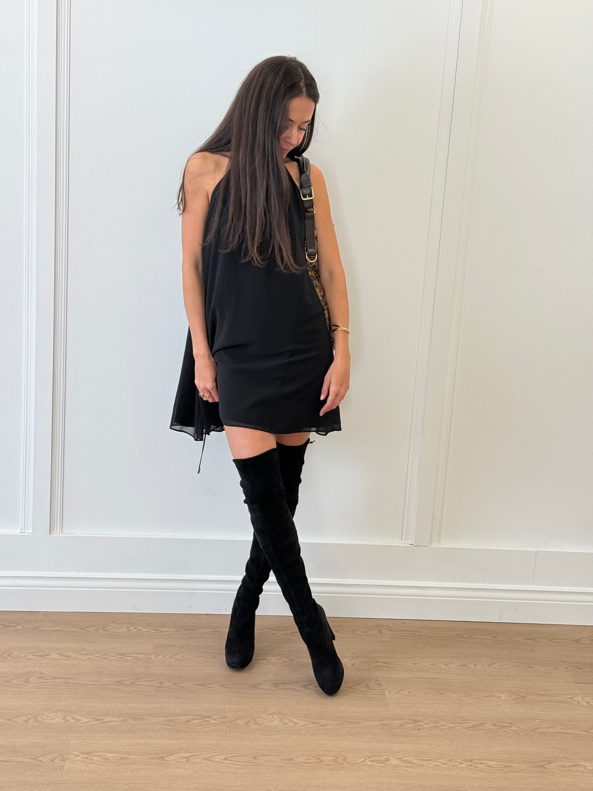 Step into sophistication with these stunning Stuart Weitzman Thigh High Heeled Boots in luxurious black suede. These elegant boots are designed to enhance your silhouette while providing both style and comfort.