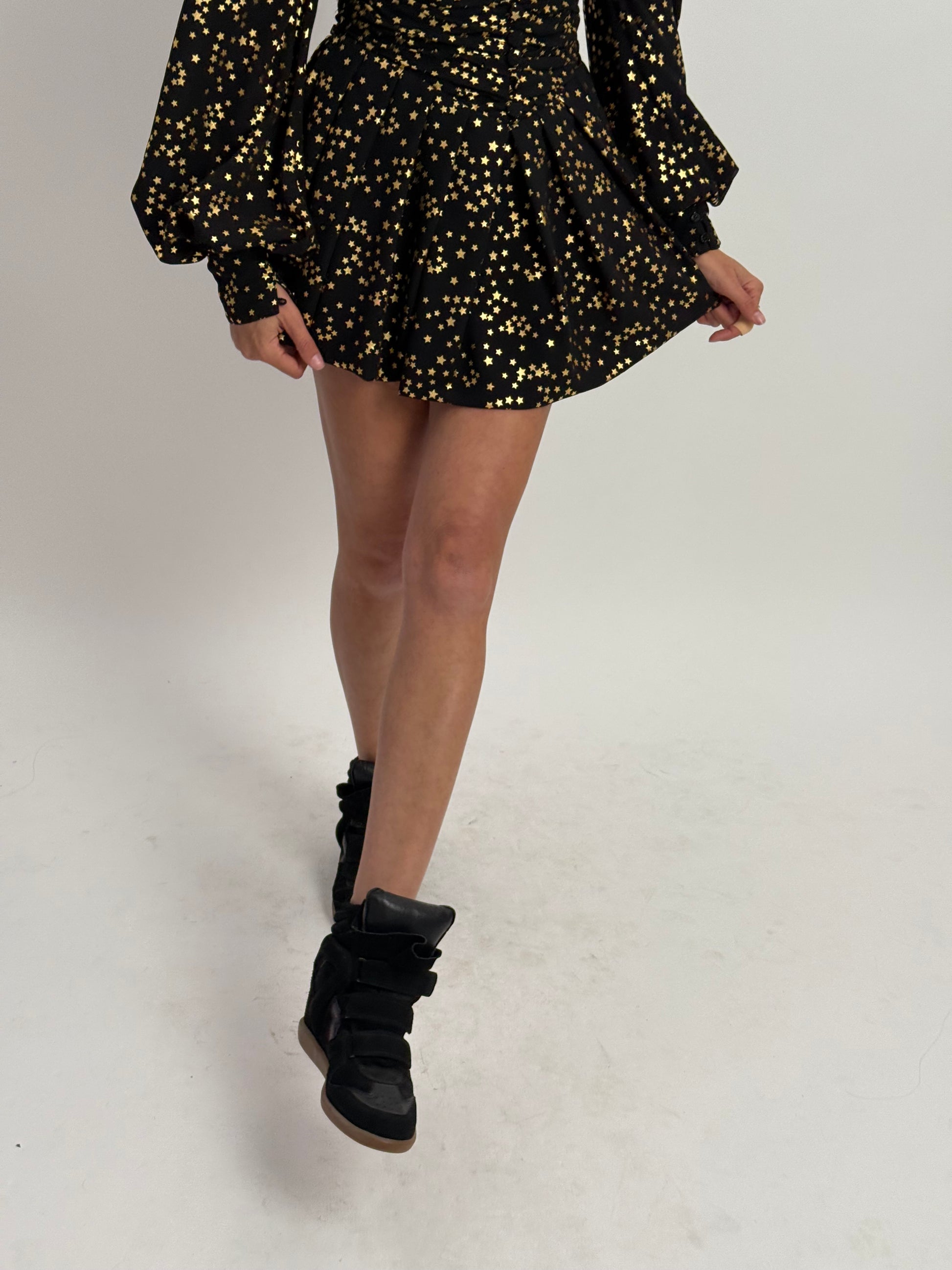 Make a dazzling entrance with THE ATTICO Gathered Gold Star Mini Dress, designed with an eye-catching cut-out detail and stylish shoulder pads. Crafted from 100% polyester, this stunning dress is perfect for those who want to stand out.