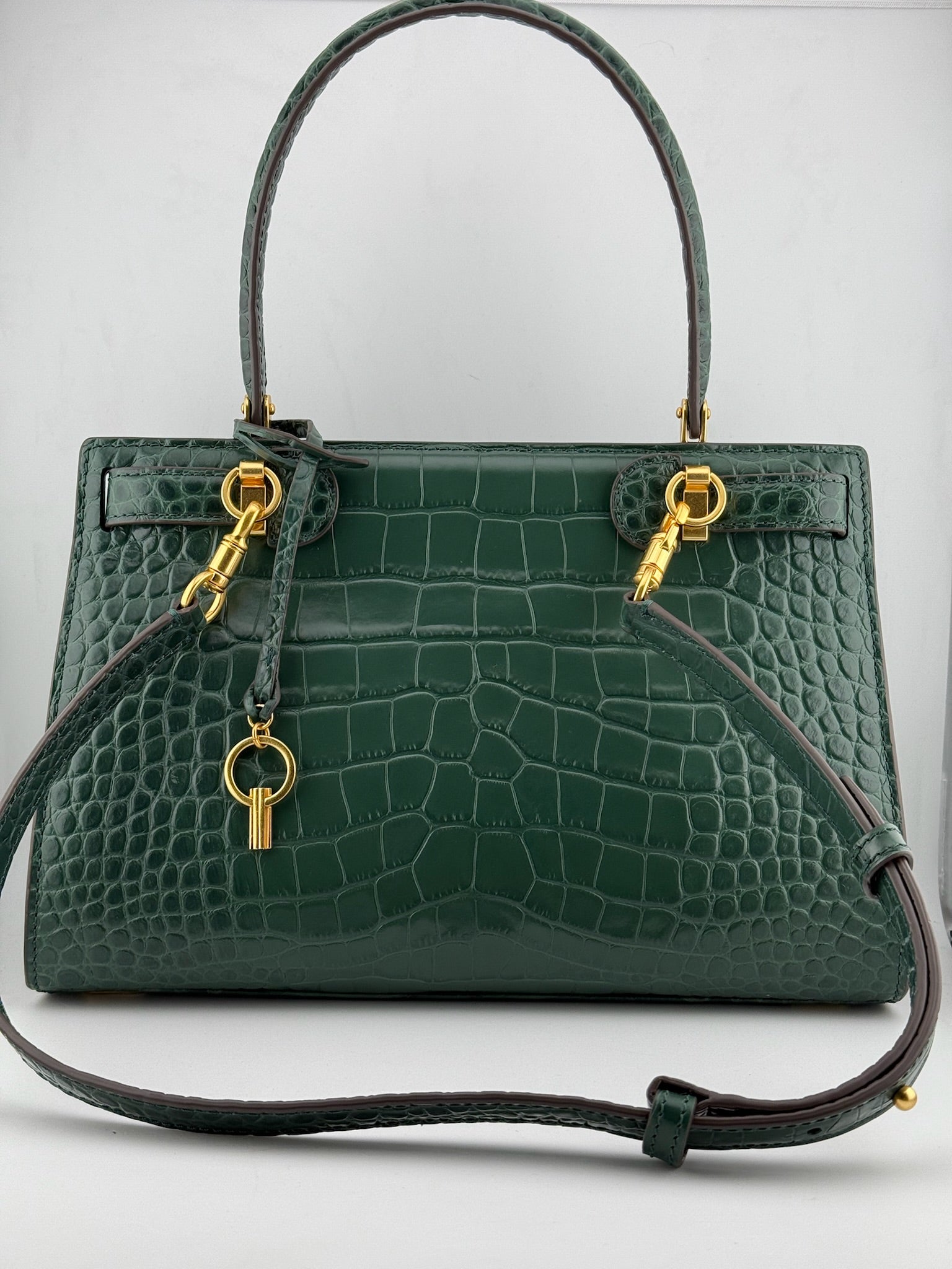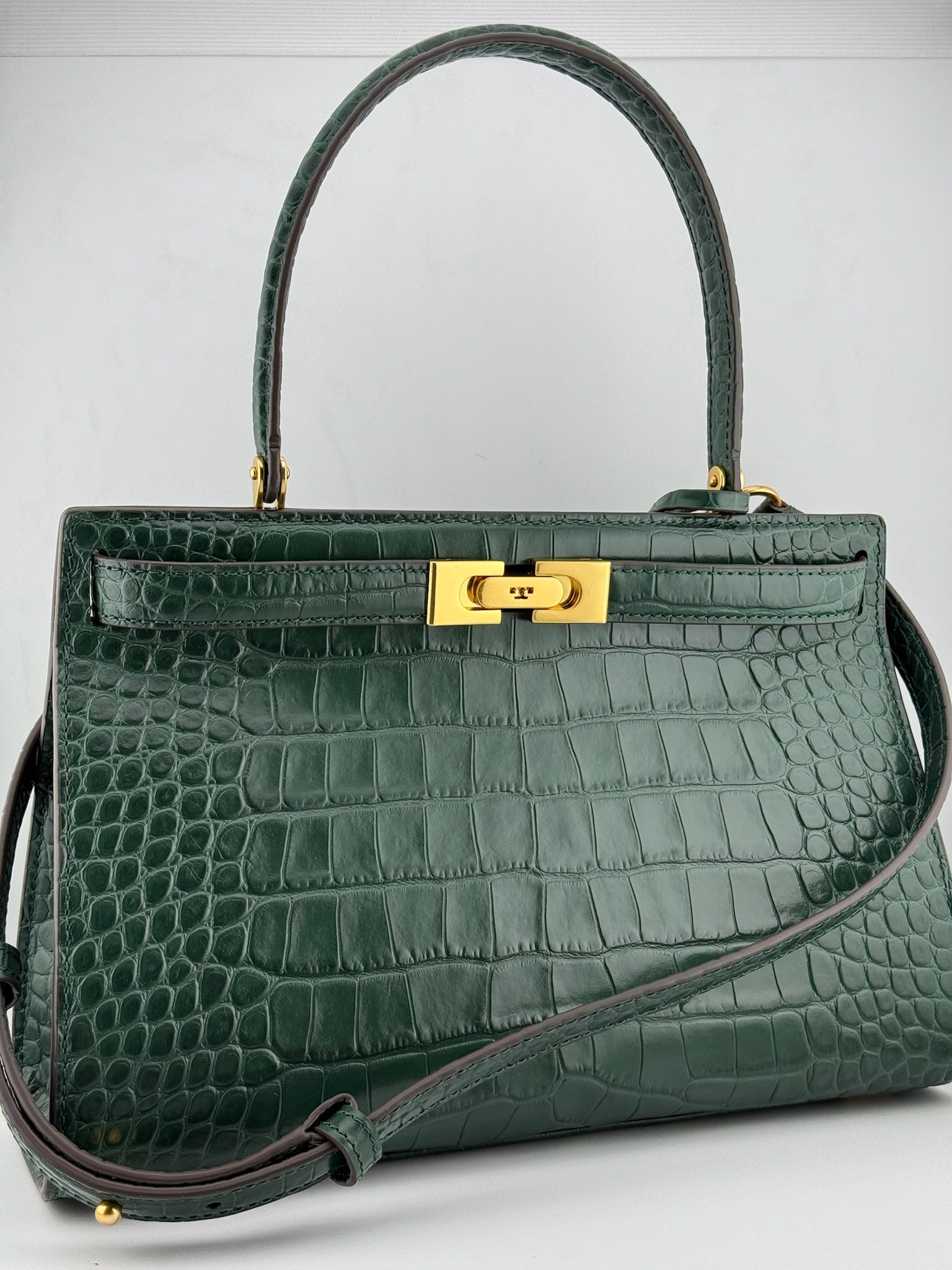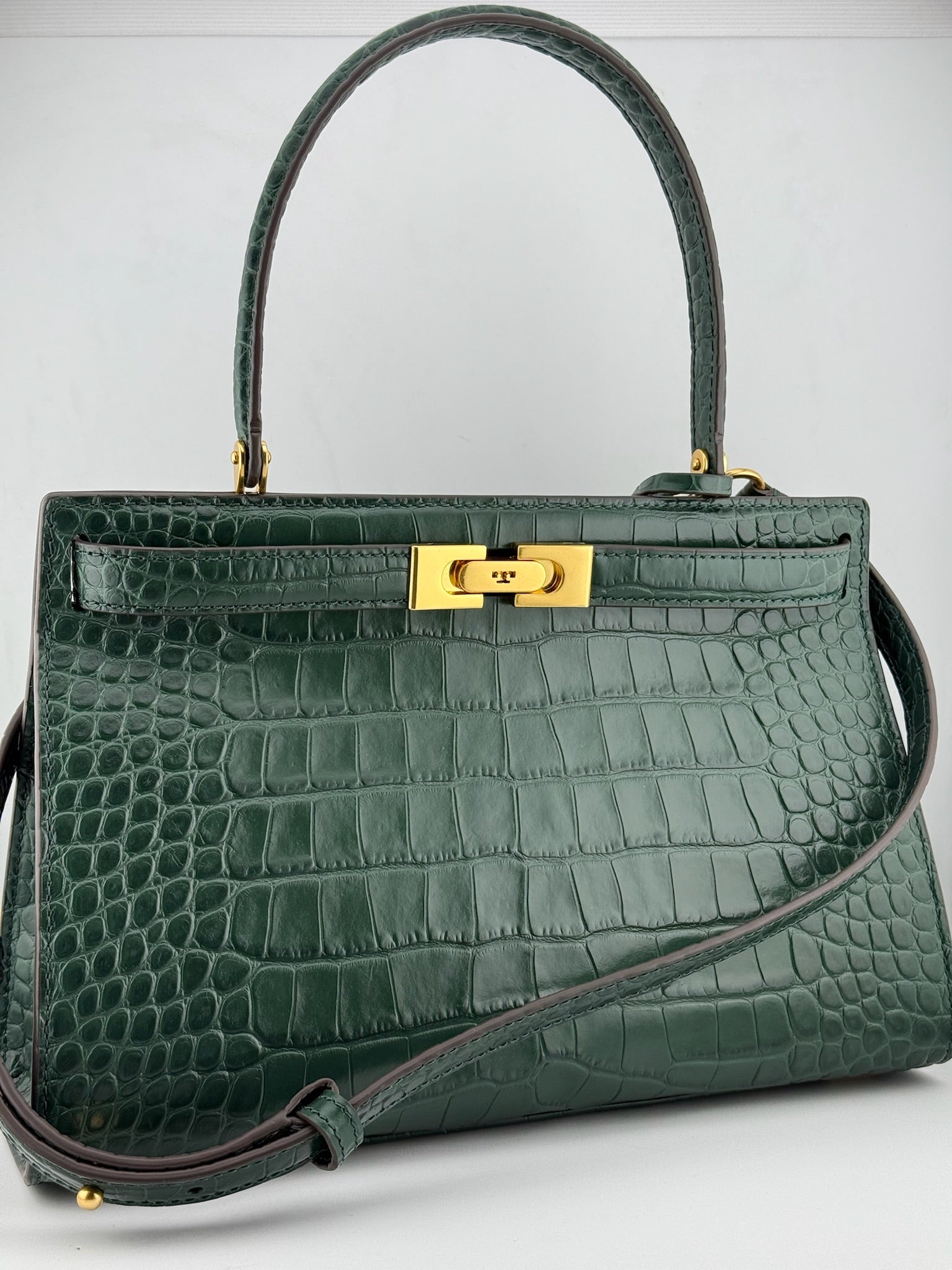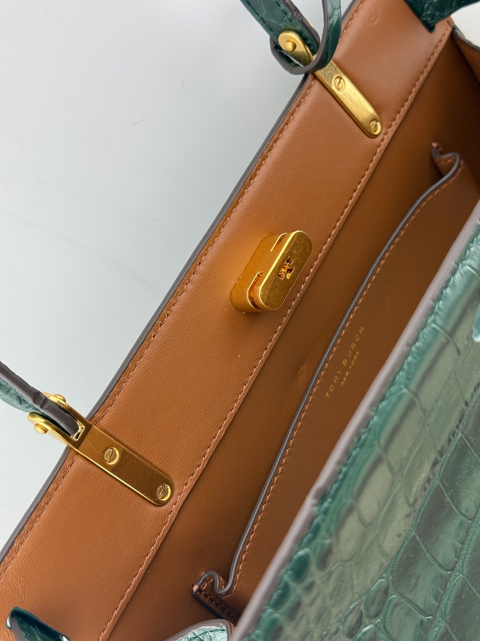Tory Burch Croc Lee Radziwill Top Handle Bag with Detachable Straps - Green