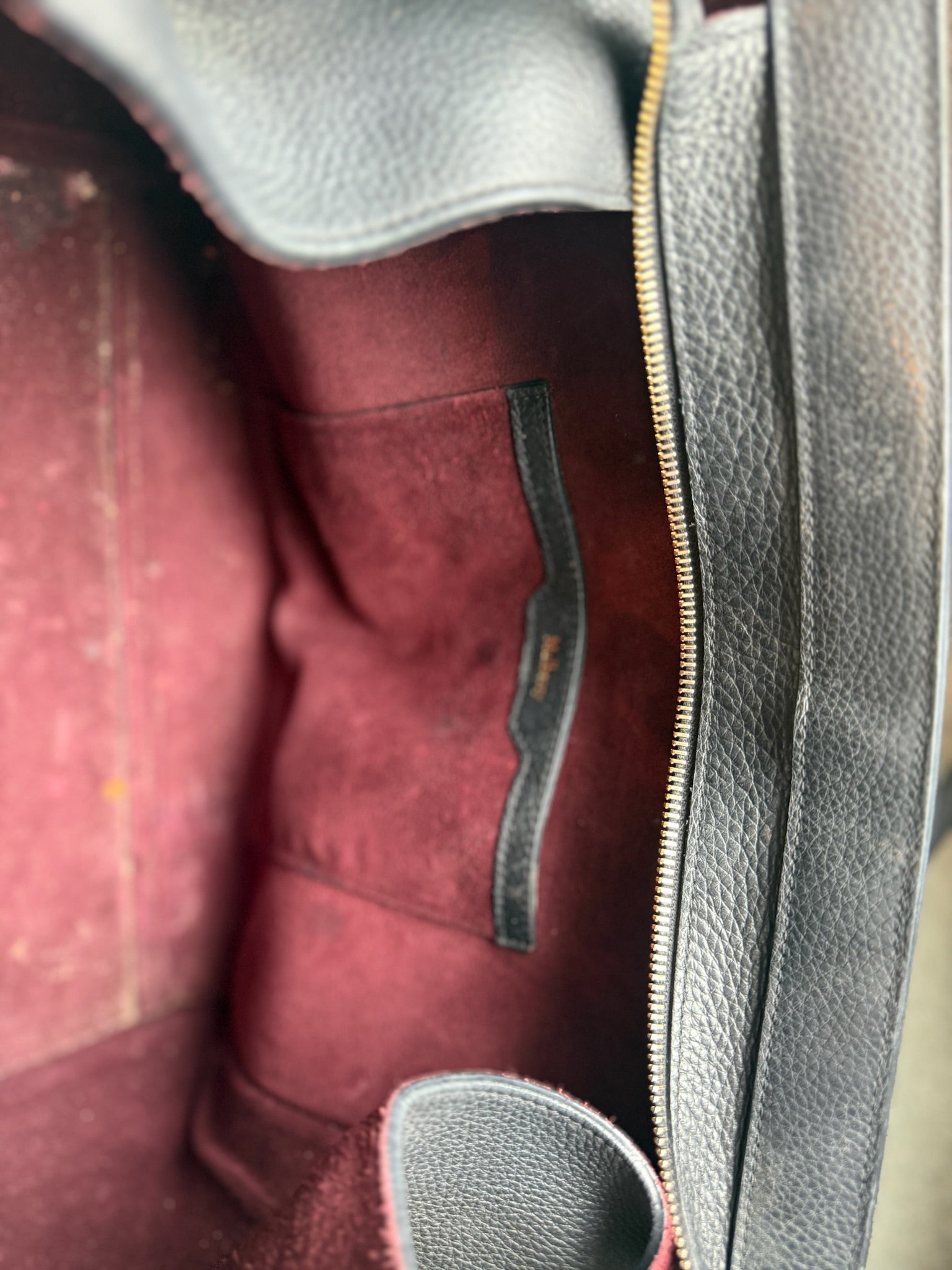 Condition: Very good – light creasing from use, clean inside, zip and handles in excellent condition.