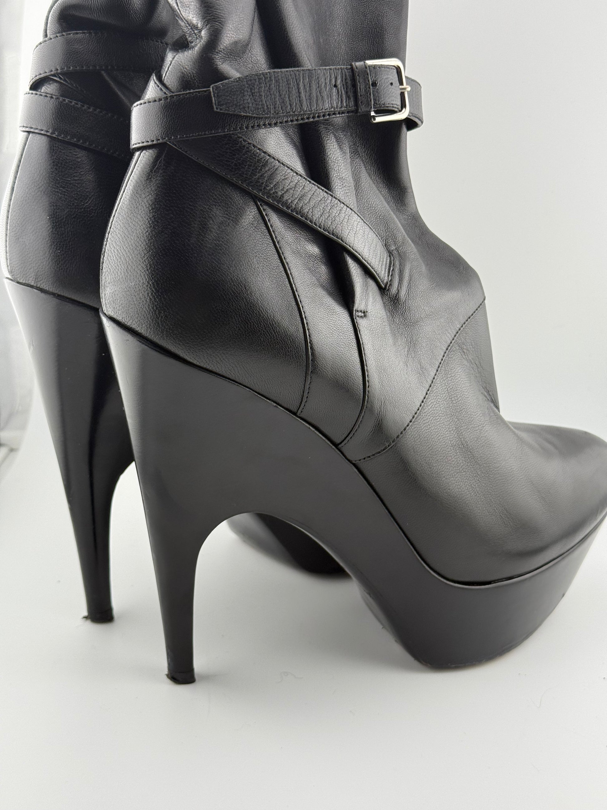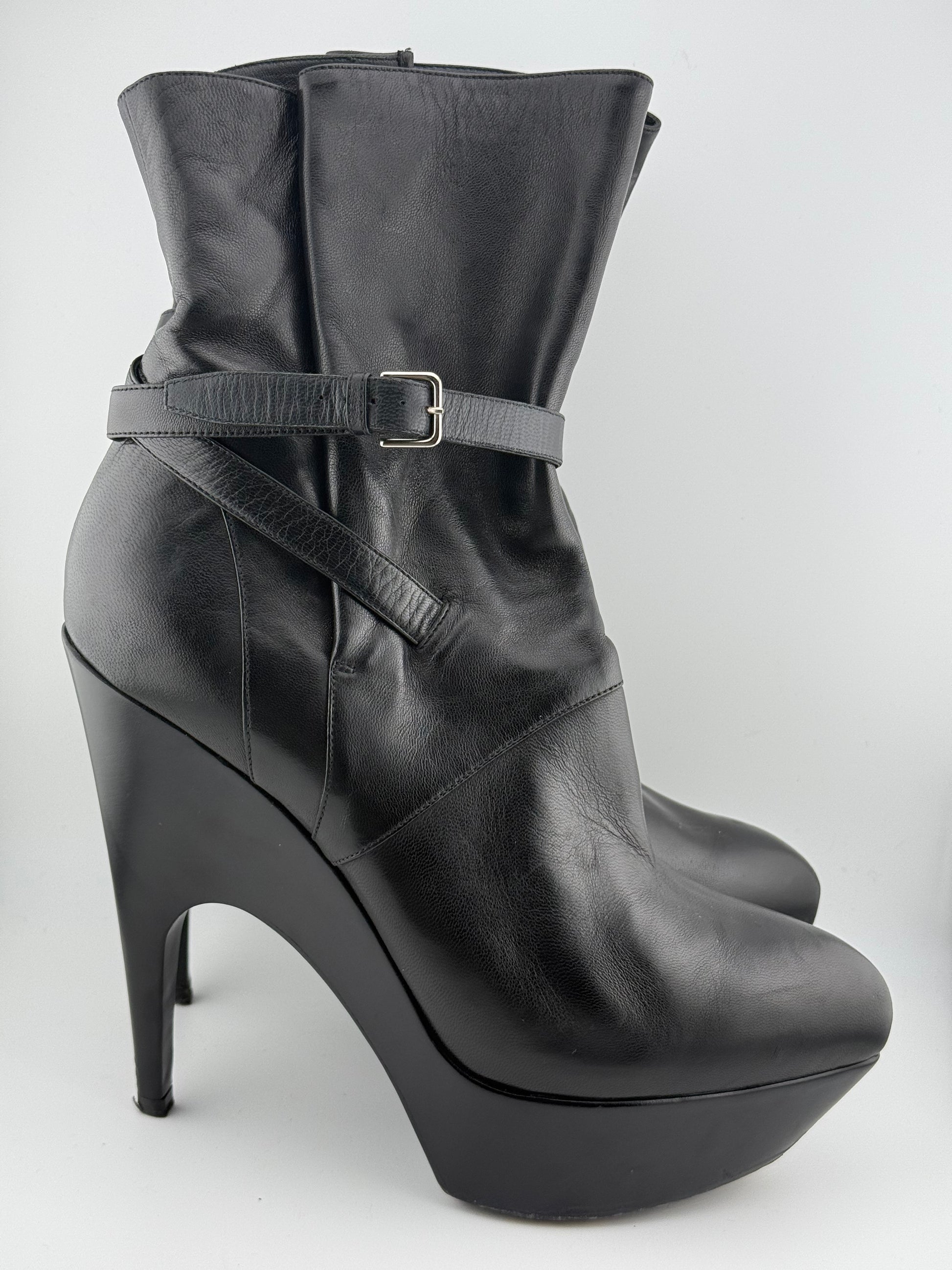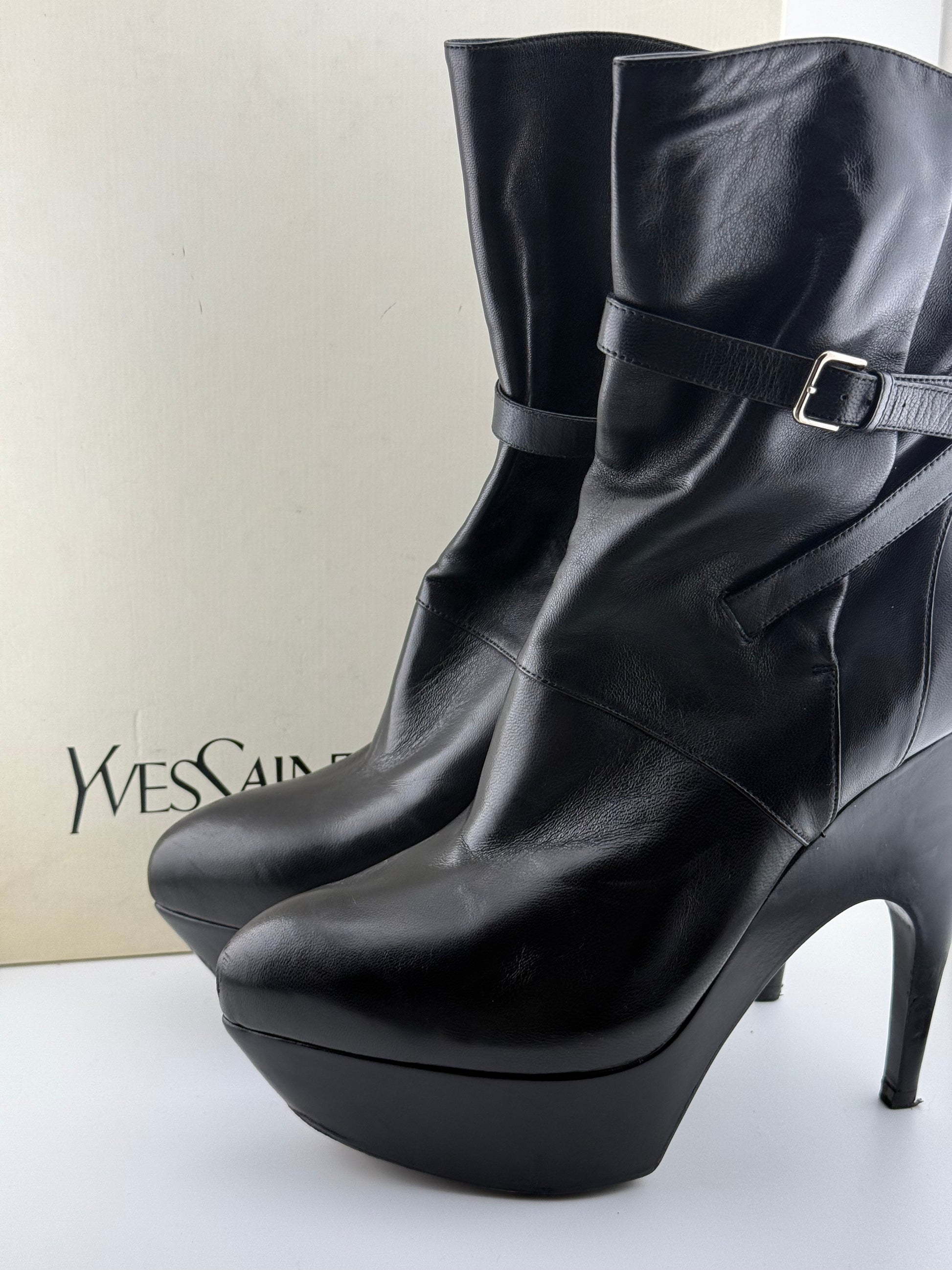 YSL Platform Ankle Boots with Single Buckle & Strap - Black (EUR 40)