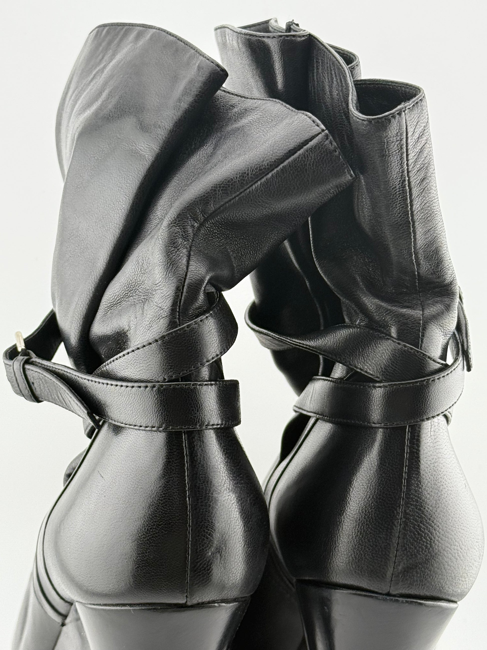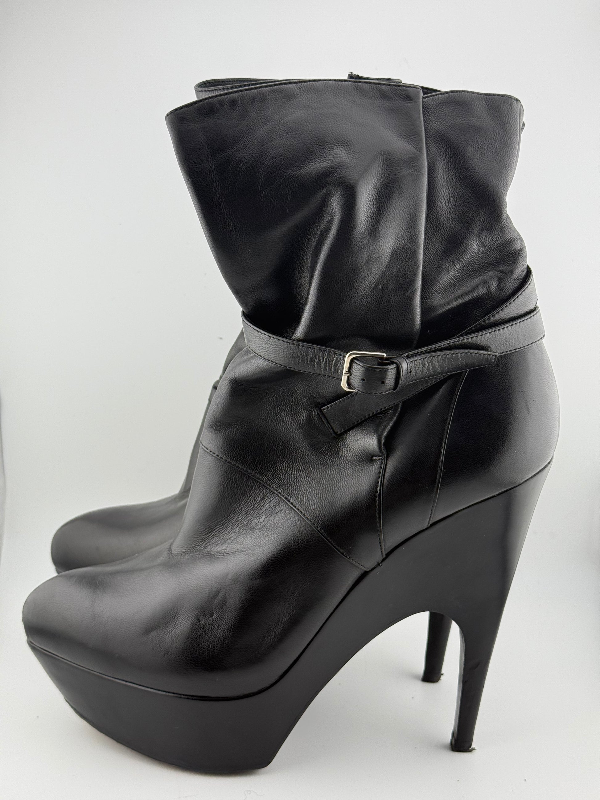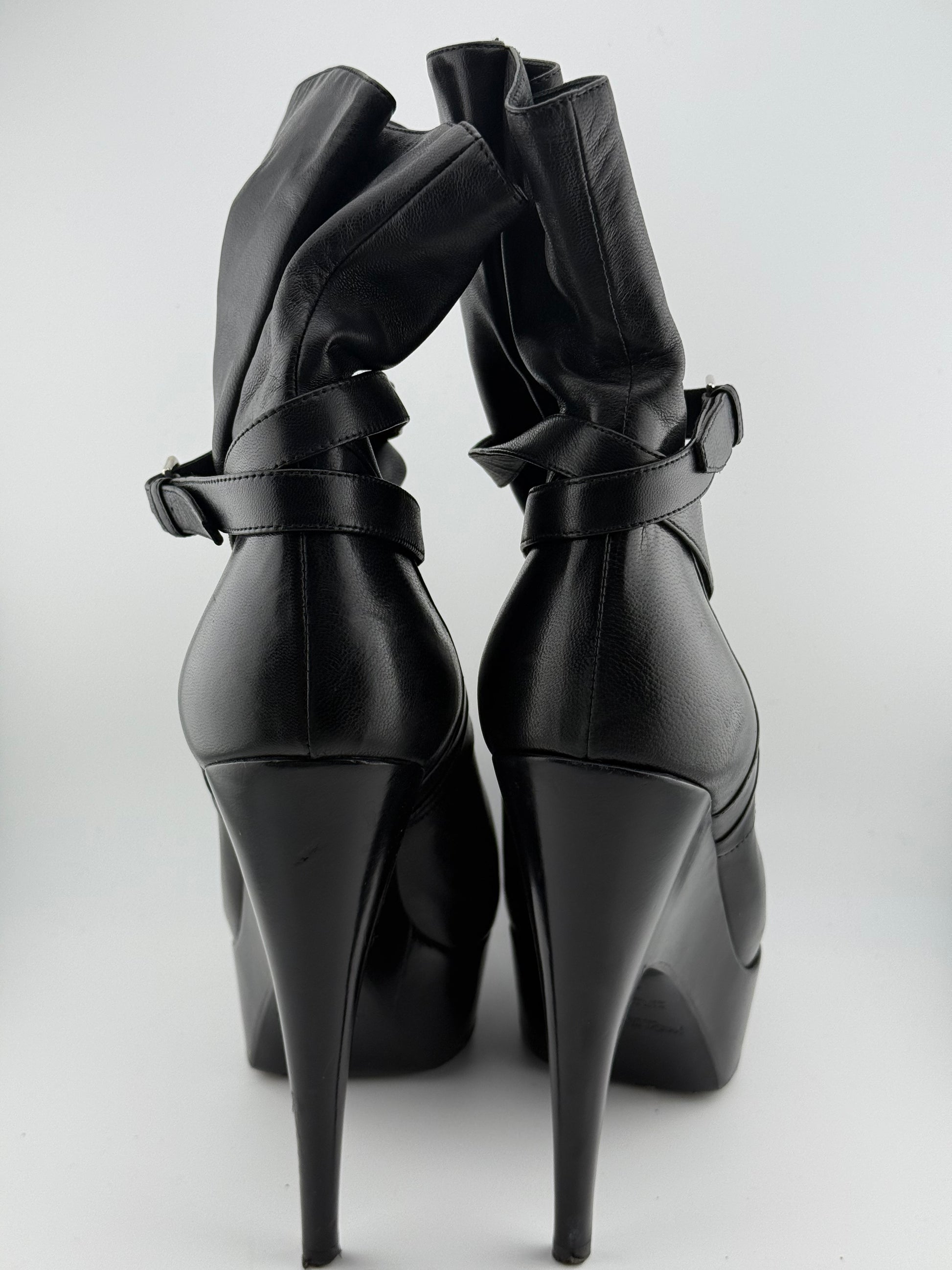 YSL Platform Ankle Boots with Single Buckle & Strap - Black (EUR 40)